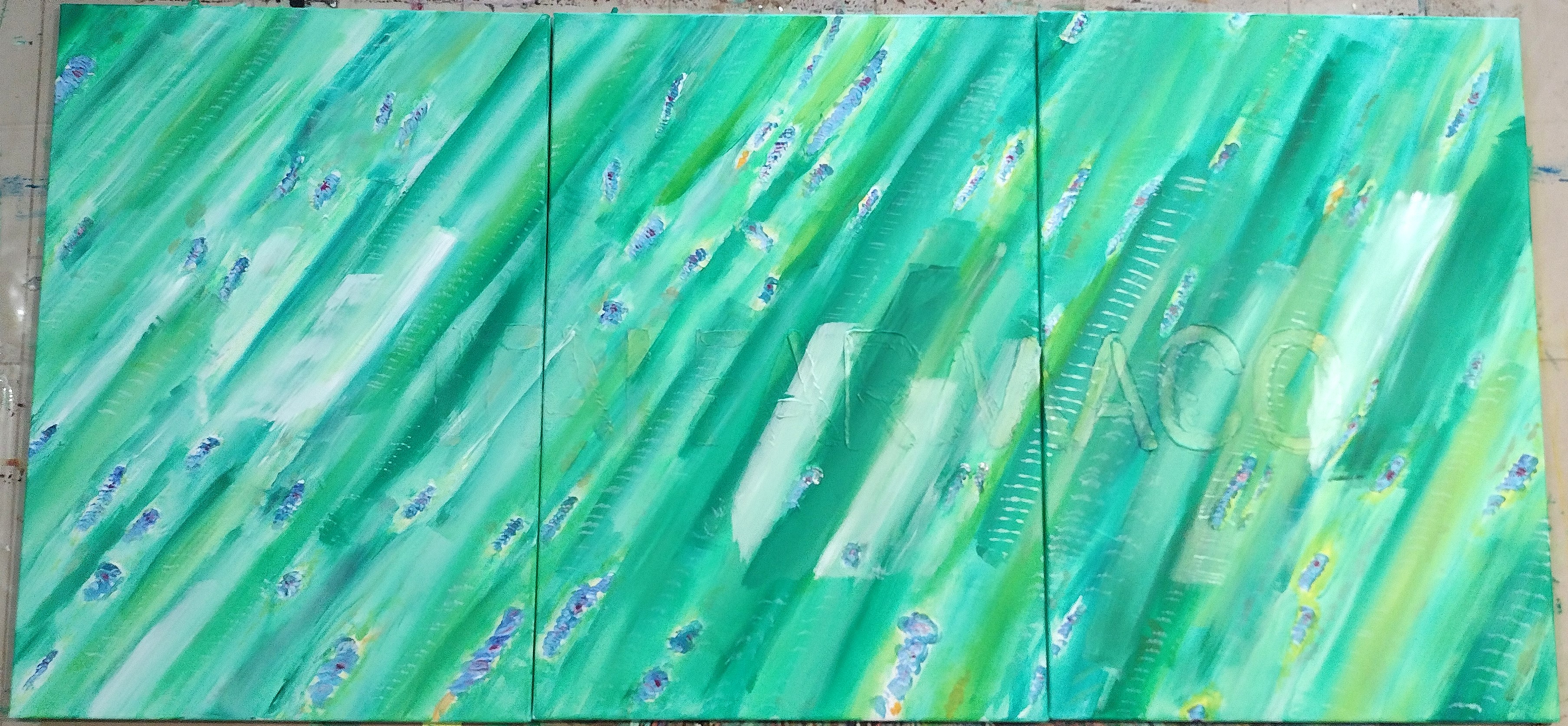 2. “Stipagrostis psychoflora” triptych, acrylics on canvases, 120x90cm x 3: